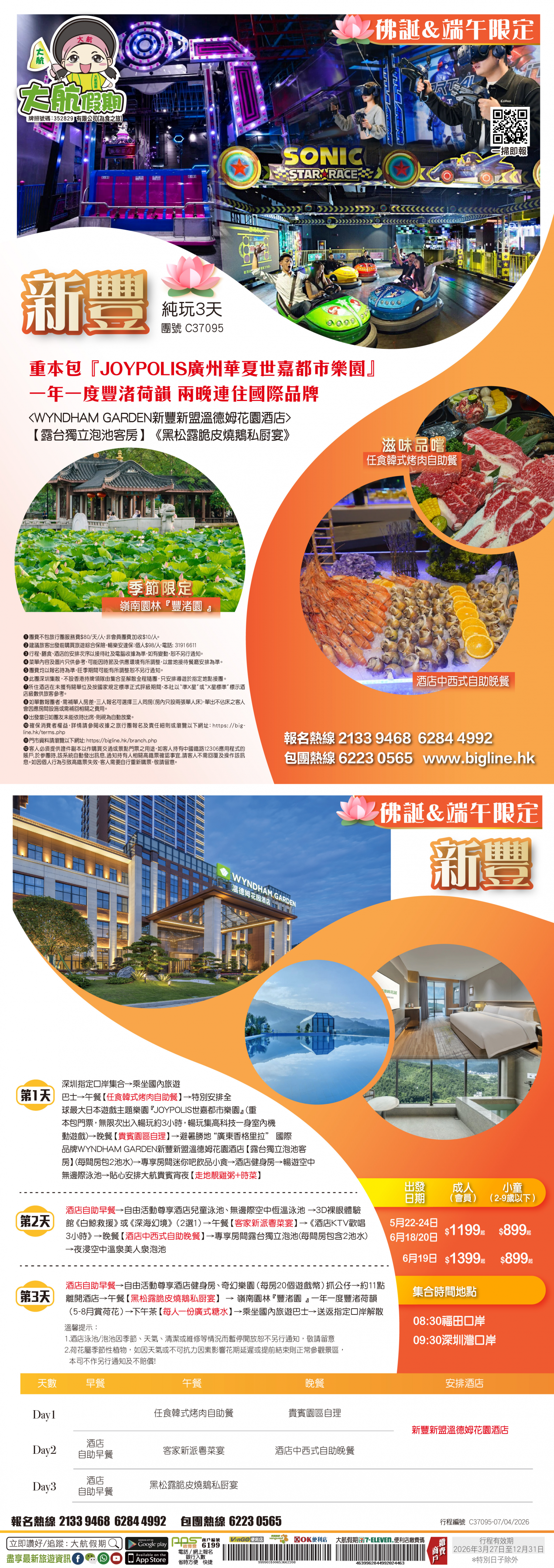 【6.19西九龍直達潮汕端午節專列】兩晚國際品牌 2025年開業【豐順溫德姆至尊豪廷溫泉酒店】尊享房間獨立泡池 粵東最長環流河 網紅無邊際泳池 一年一度龍舟賽 DIY粽子 高鐵純玩3天