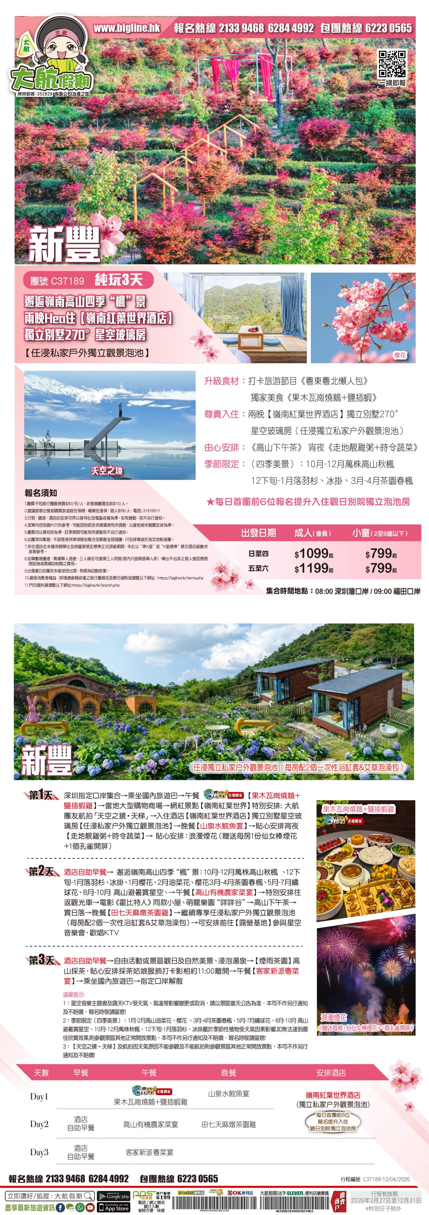 【季節限定】邂逅嶺南高山四季“楓”景 兩晚Hea住【嶺南紅葉世界酒店】獨立別墅270°星空玻璃房【任浸私家户外獨立觀景泡池】 嘆高山下午茶 煙花體驗 航拍「天空之鏡•天梯」純玩3天