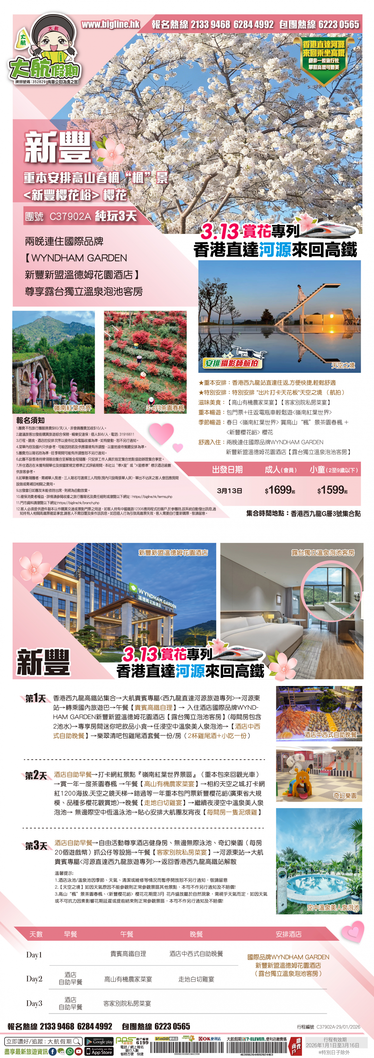 【3.13香港直達河源高鐵賞花專列】醉美花海【黃花風鈴木+金燦燦油菜花】全港獨家【五華熱礦泥溫泉度假村】熱礦泥SPA+國際品牌【河源匯景希爾頓逸林酒店】嘆酒店海鮮自助晚餐 純玩3天