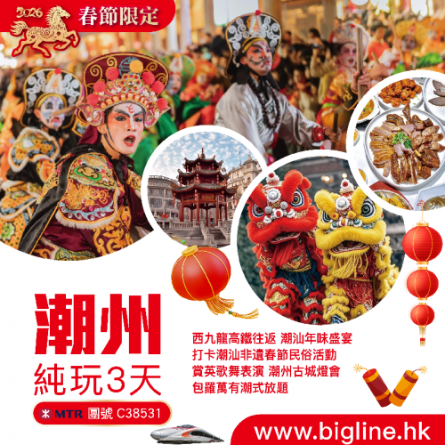 【春節限定】西九龍高鐵往返 年味潮汕 非遺新春巡遊 英歌舞 舞火龍 標旗 營老爺 潮遊南澳島 賞一年一度迎春桃花 純玩3天
