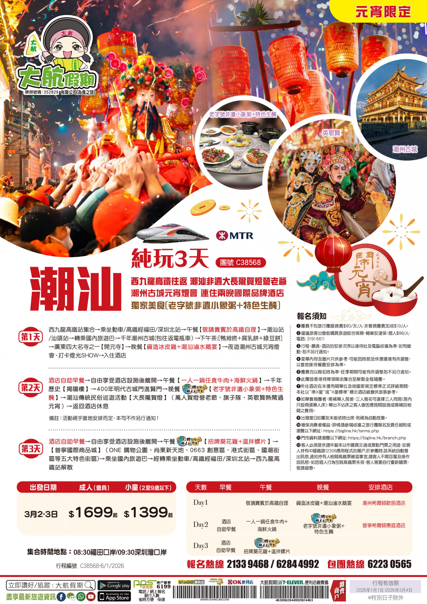 【元宵限定】【正月十六】一年一度潮汕傳統民俗活動“新亨擺豬羊”+“潮州古城元宵燈會” 連住兩晚國際品牌【揭陽希爾頓歡朋酒店】西九龍高鐵往返 純玩3天
