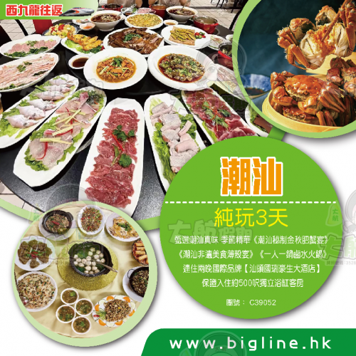 【西九龍高鐵往返】甄選潮汕真味 季節精華《潮汕秘制金秋肥蟹宴》《潮汕非遺美食薄殼宴》《一人一鍋鹵水火鍋》連住兩晚國際品牌【汕頭國瑞豪生大酒店】保證入住獨立浴缸客房 純玩3天