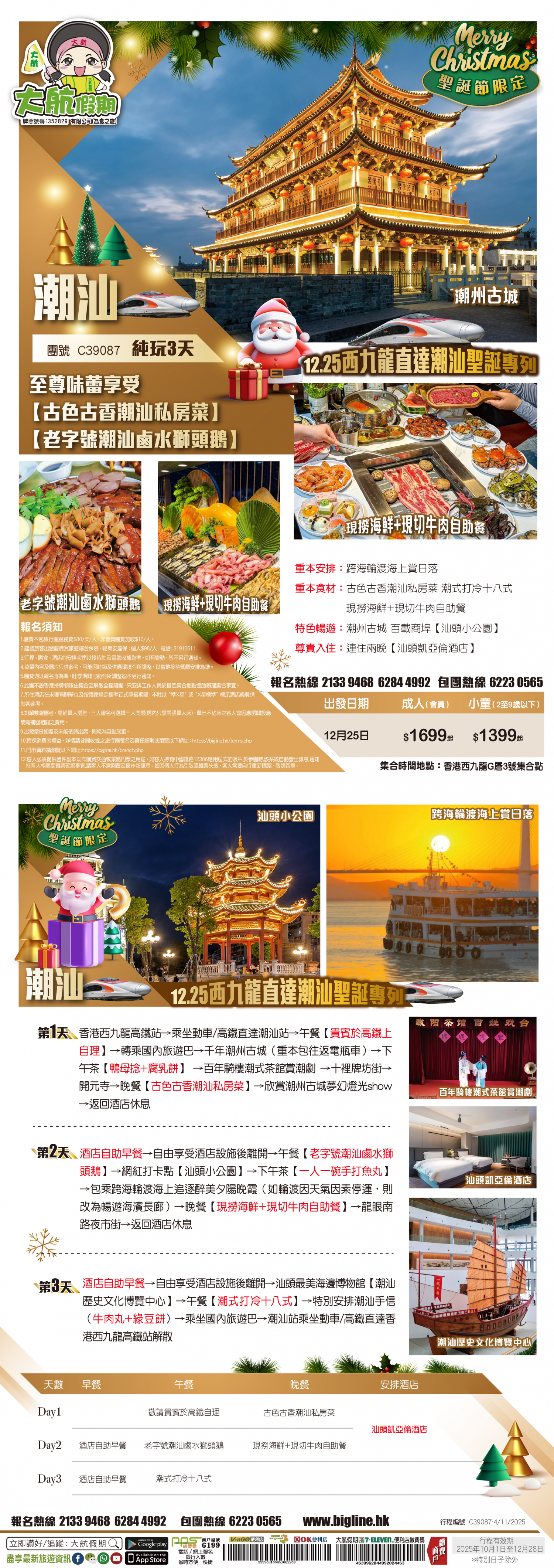<12.25西九龍直達潮汕聖誕專列>至尊味蕾享受 【古色古香潮汕私房菜】【老字號潮汕鹵水獅頭鵝】【現撈海鮮+現切牛肉自助餐】百年騎樓潮式茶館賞潮劇 跨海輪渡海上賞日落 純玩3天