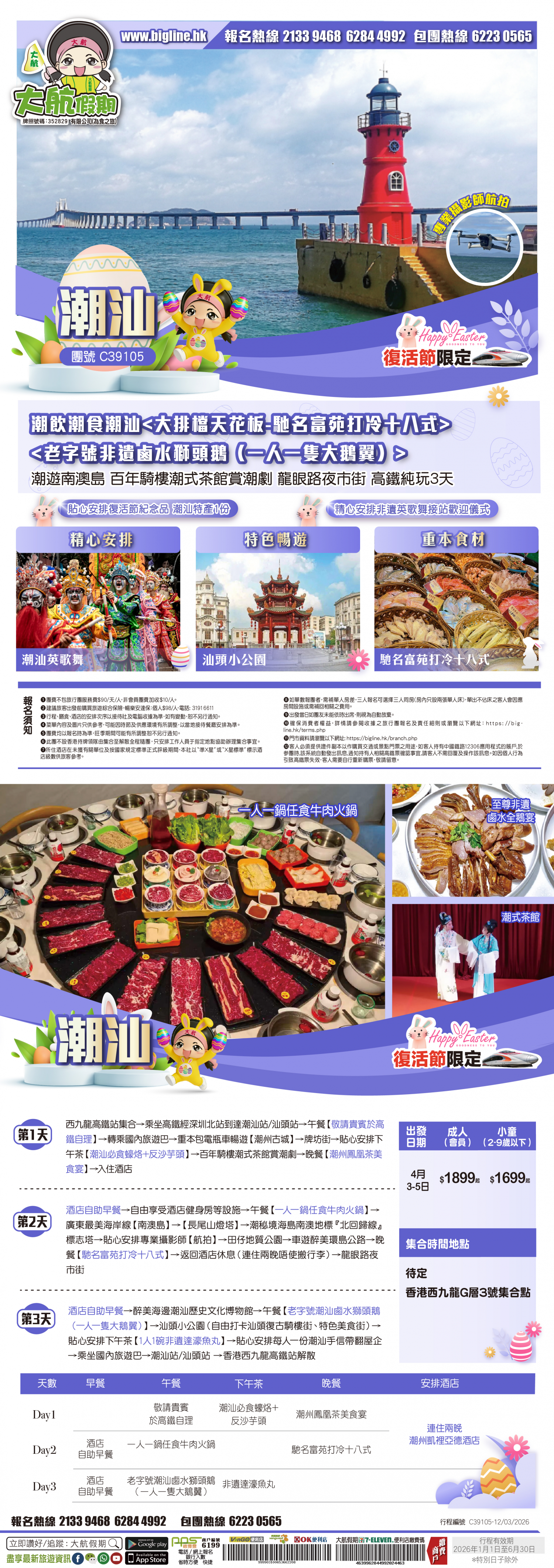 | 第3天 | 酒店自助早餐 | 澄海滷水獅頭鵝宴+1人1隻大鵝翼 |