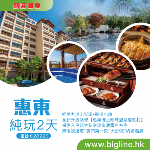 【甄選溫泉】嶺南第一泉【媲美九連山】罕有原生態硫磺泉 任浸房間獨立溫泉池 連住兩晚全新裝修升級【惠東御上明珠溫泉度假村】不時不食暖笠笠羊腩煲 冬日圍爐煮茶 純玩3天