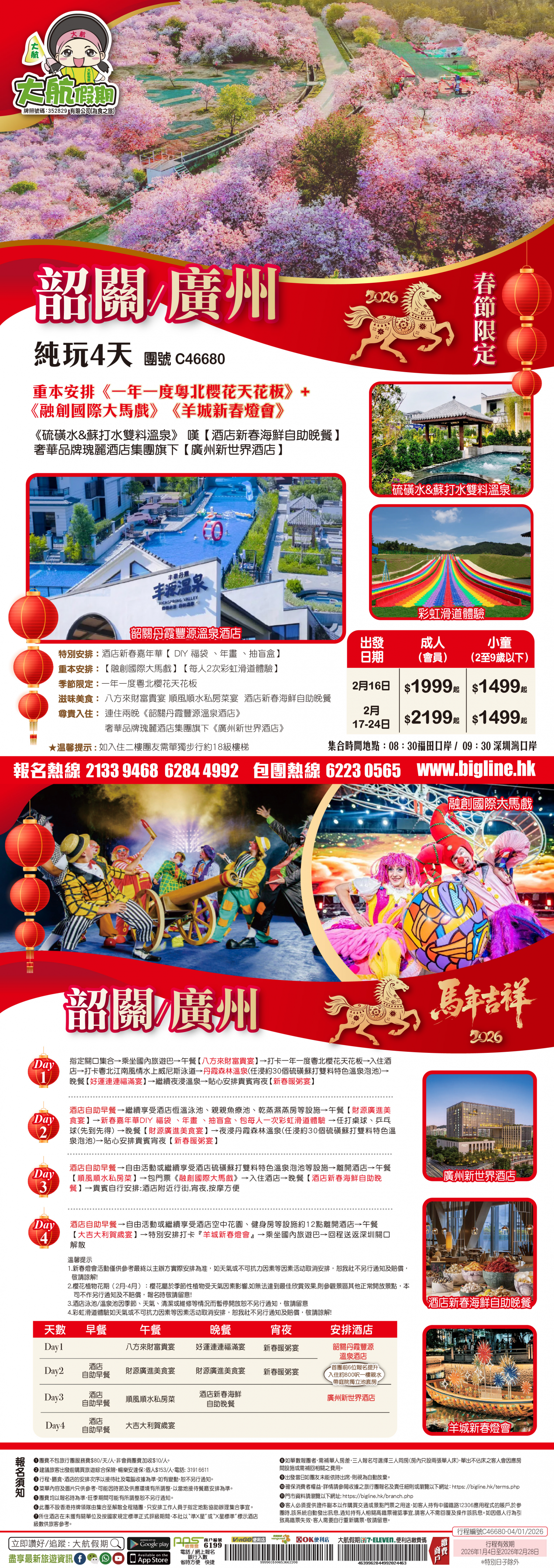 | 第4天 | 酒店自助早餐 | 大吉大利賀歲宴 |