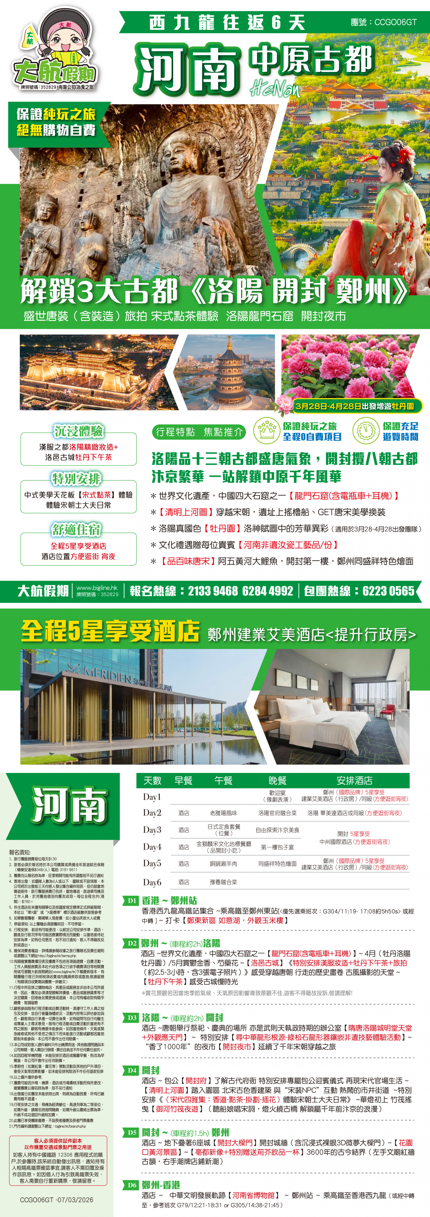 .酒店 ~ 包公【開封府】瞭解古代府衙 特別安排專屬包公迎賓儀式 再現宋代官場生活 ~ 【清明上河園】踏入園區 北宋古色香建築 與“宋裝NPC”互動 熱鬧的市井街道 ~特別安排《(宋代四雅集:香道-點茶-掛劃-插花)體驗宋朝士大夫日常》 ~華燈初上 竹筏搖曳【禦河竹筏夜遊】(聽船娘唱宋詞,燈火繞古橋 解鎖屬千年前汴京的浪漫)