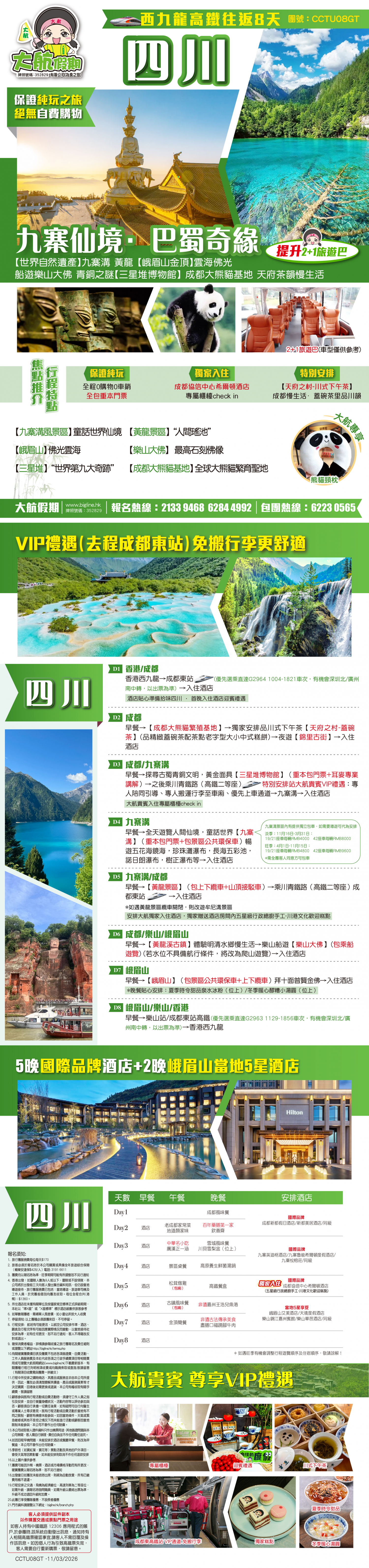.早餐→樂山站/成都東站高鐵(優先選乘直達G2963 1129-1856車次,有機會深圳北/廣州南中轉,以出票為準)→香港西九龍