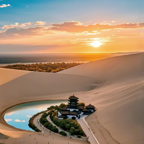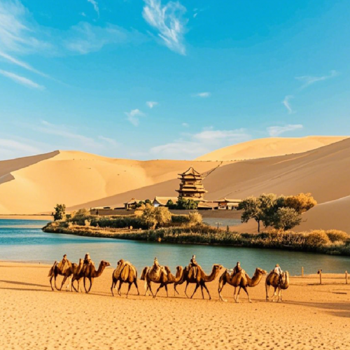 .香港國際機場 -- 敦煌國際機場 -- 飛天美女迎賓 -- 「鳴沙山月牙泉」天下奇響、自然妙音- 千百年不枯竭不渾濁,風吹沙不落-(包騎駱駝入電瓶車出、鞋套) 體驗滑沙每位1次 -- 「月牙泉鎮」賞千畝李廣杏花競相綻放#預測花期:3月20日-4月10日