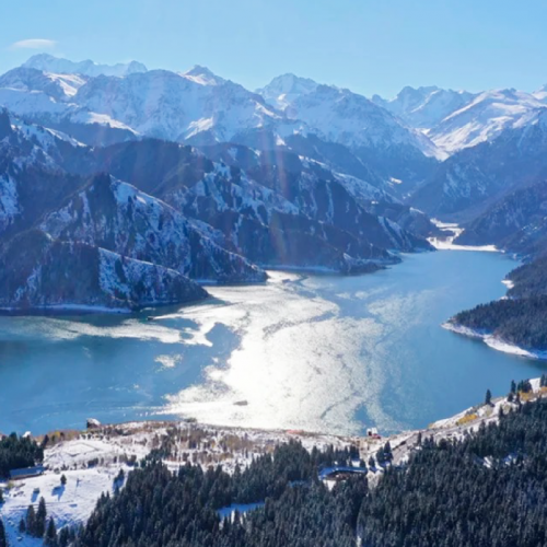 .酒店--(車程約1.5小時) 「天山天池景區(包乘環保車)」特別安排纜車登上馬牙山觀景台,從海拔更高絕佳視角俯瞰整個天池、環湖群山與遠處的博格達峰--「國際大巴紮」獨特的建築風格、豐富的民族特色商品和美食而聞名,譽為「新疆之窗」「中亞之窗」和「世界之窗」