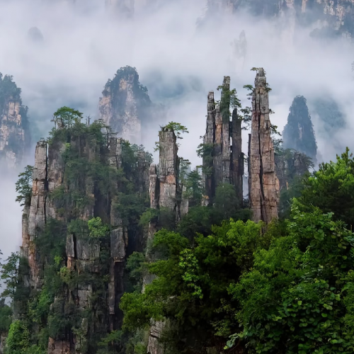 酒店→世界自然遺產【武陵源風景區】(全包門票及環保車)→【天子山景區】(包乘坐纜車)賀龍公園、天子觀景臺、畫中游、雲青岩、禦筆峰、仙女散花→【包無人機航拍小視頻】→【袁家界景區】→張家界十大絕景之一【迷魂臺】、天下第一橋、哈利路亞懸浮山原型【乾坤柱】包乘坐【百龍天梯】→【水繞四門】萬歲牌、駱駝峰、神兵聚會