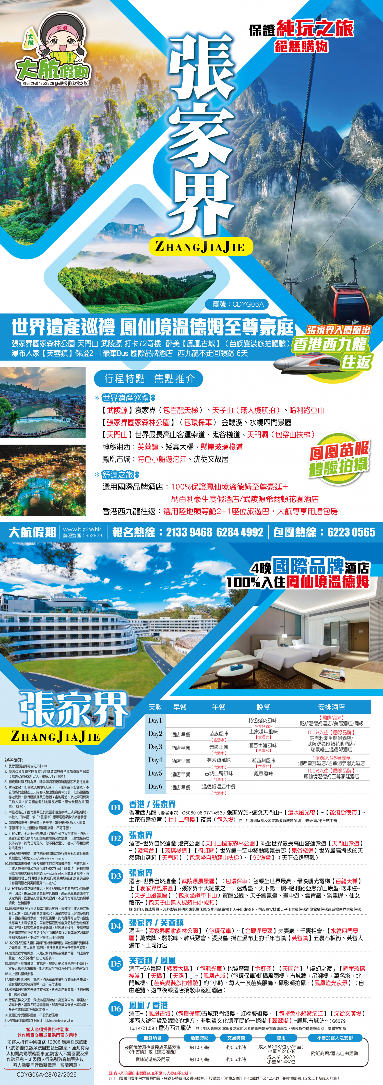 《西九直達張家界*鳳凰返》 #粵語導遊#2026推出「全港雙獨家」《“神仙民宿”山水澗·德夯雅苑 古城觀景位下午茶》張家界森林公園 鳳凰古城<VIP通道 苗族變裝旅拍>德夯苗寨 免稅纯玩5天
