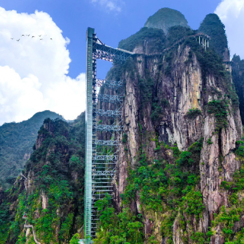 自助早餐→(約2.5h車程)【莽山五指峰景區】(含景區車及往返纜車 邂逅霧淞 雲海) 體驗乘坐電影【流浪地球2】現實板—摩天嶺垂直電梯,只需59秒就可達莽山雲巔 →郴州市區