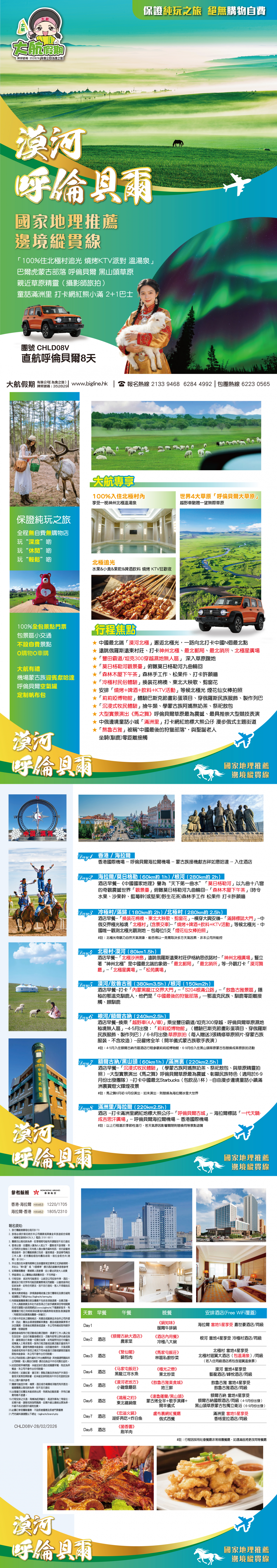 .酒店 --打卡滿洲里網紅地標大熊公仔--「呼倫貝爾古城」-- 海拉爾標誌「一代天驕-成吉思汗廣場」-- 呼倫貝爾海拉爾機場 -- 香港國際機場
