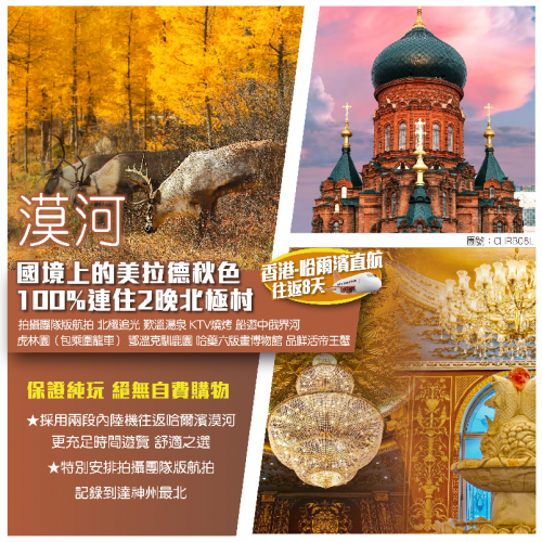 內蒙 鎏金之秋 大興安嶺「阿爾山 住景區內維景私湯溫泉新酒店」航拍穿越草原 滿洲里▪包最北Starbucks飲品 敖魯古雅使鹿(親近投餵)訪中國冷極攝氏點 俄羅斯+蒙古族民俗手作體驗 盧布里 直航8天