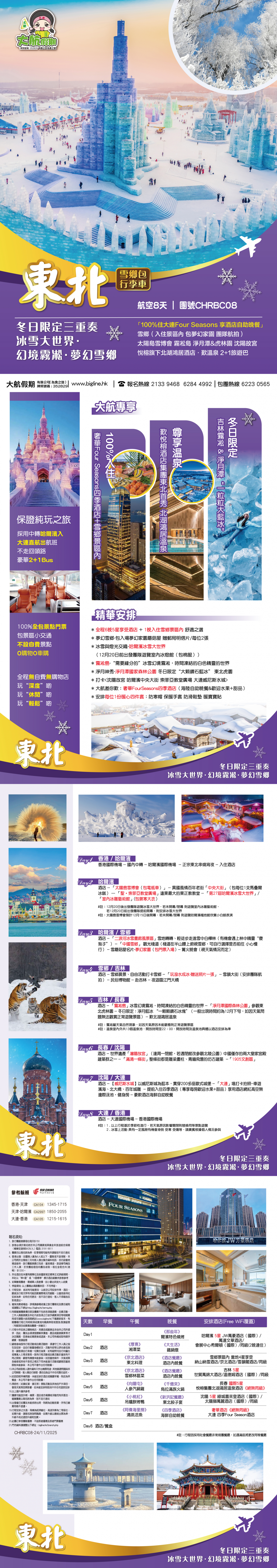 #註:12月20日後出發團隊遊覽冰雪大世界,若未開幕/閉幕 則遊覽室內冰雕藝術館,若12月20日前出發團隊提前開幕,則安排冰雪大世界