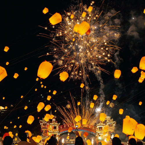 溫馨提示:<千燈會·孔明燈>係綁風箏線可牽引進行放飛,是可降解物資的氦氣球,活動結束需環保回收。