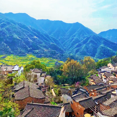 酒店~【婺源篁岭·梯田油菜花海】*(包纜車往返+<定點式>航拍團隊旅行Vlog)漫步梯田花海,徽派建築與之相接,大片都是油畫質感,四季都有特色“曬秋”景象~【徽州不夜城·婺女洲】觀賞震撼火焰美學演出:水上打鐵花、火爐、火刀、火流星、篝火狂歡等,金閣水幕燈光秀