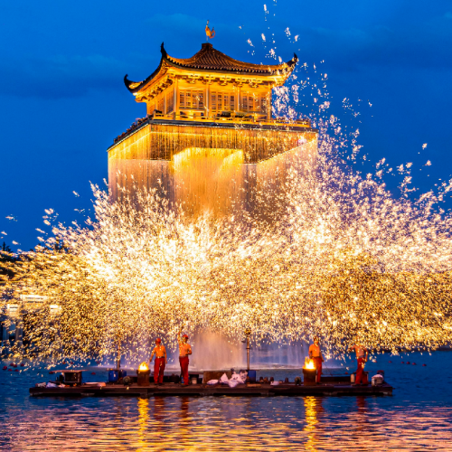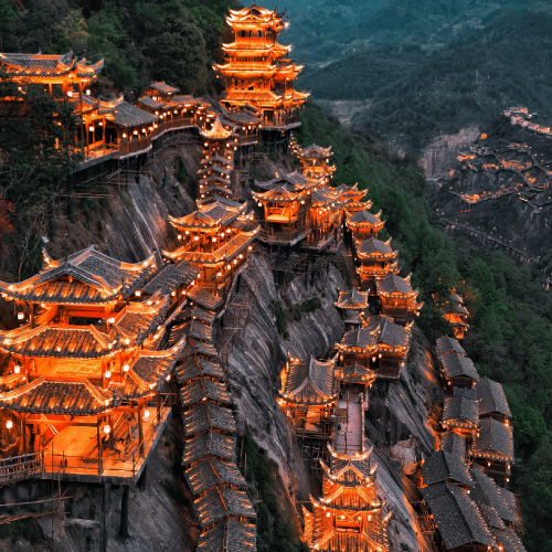 酒店~登頂【葛仙山】(包纜車往返)感受問道天鏡臺~【葛仙村】(包每人一隻心願"孔明燈",沉浸式<千燈會>體驗感)打卡網紅“靈寶之瀑”,17:00之後將會陸續呈現民間演藝活動:非遺火藝(藥發木偶“火樹銀花”、魚燈巡遊、煙花秀、《歸真記》水幕電影秀等 )~上饒