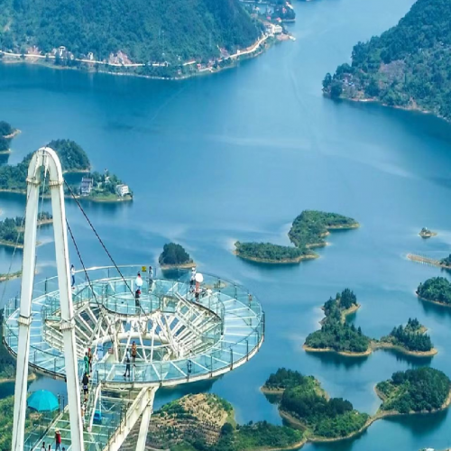 酒店~【仙島湖·天空之城】(包往返纜車+上行段景區小交通+拍攝團隊旅行vog)翡翠般的成千小島與山川湖泊的搭配,吉尼斯認證的“天空之鏡”玻璃觀景台、沿途各種打卡點,大片隨手拍~武漢