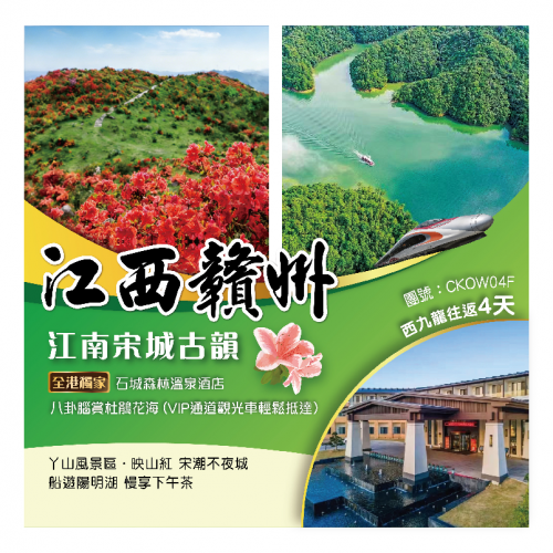 酒店~【八卦腦·杜鵑花海】(乘坐VIP通道觀光車 ☆季節鑒賞#4-5月)欣賞高山草甸、當漫山紅遍,五彩斑斓染上春山~赣州高鐵站~(優先選用直達票《參考車次:G901赣州西-香港西九龍19:32-21:56》如無直達票則安排深圳北中轉)~香港西九龍站散團