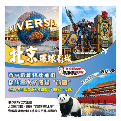 .酒店 - 故宮博物院深度遊【中軸+西線:午門進入 中軸前朝三大殿(太和、中和、保和)慈寧宮、乾清宮、交泰殿】 - 包乘雙層接駁巴士 - 「北京動物園」(擁有國寶大熊貓多只,其中有大熊貓頂流-西直門三太子:萌蘭,還有 金絲猴 東北虎 白唇鹿 矮種馬 丹頂鶴等珍惜動物)&特別安排體驗親手餵食小羊、小馬等溫和的小動物