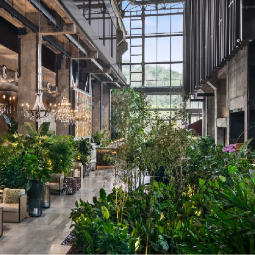 .香港國際機場 -- 北京國際機場 -- 「朗園Station」⽼廠房經巧思翻新,紅磚、鐵窗搭配春⽇綠植,呈現復古⼜時尚的⽂藝氛圍
