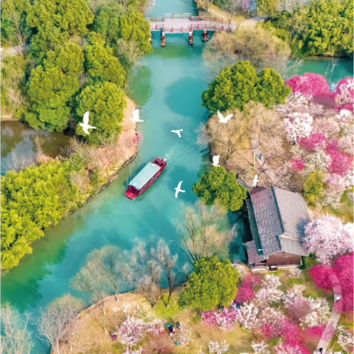 .酒店 -- 「西溪濕地國家公園」(乘電瓶船遊覽及景區交通車)江南的莫奈花園,櫻花、海棠花、牡丹、芍藥、紫藤花次第開放 -- 「京杭大運河 拱宸橋 橋西歷史街區」走青石板路,逛非遺小店,解鎖運河邊的煙火與風雅