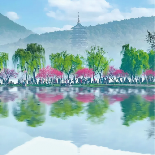 .香港 -- 杭州/無錫/上海/南京(機場)--「杭州西湖」“曲院風荷”早櫻海棠點綴期間;西湖十景之首的蘇堤春曉,桃紅柳綠是西湖標誌性盛景