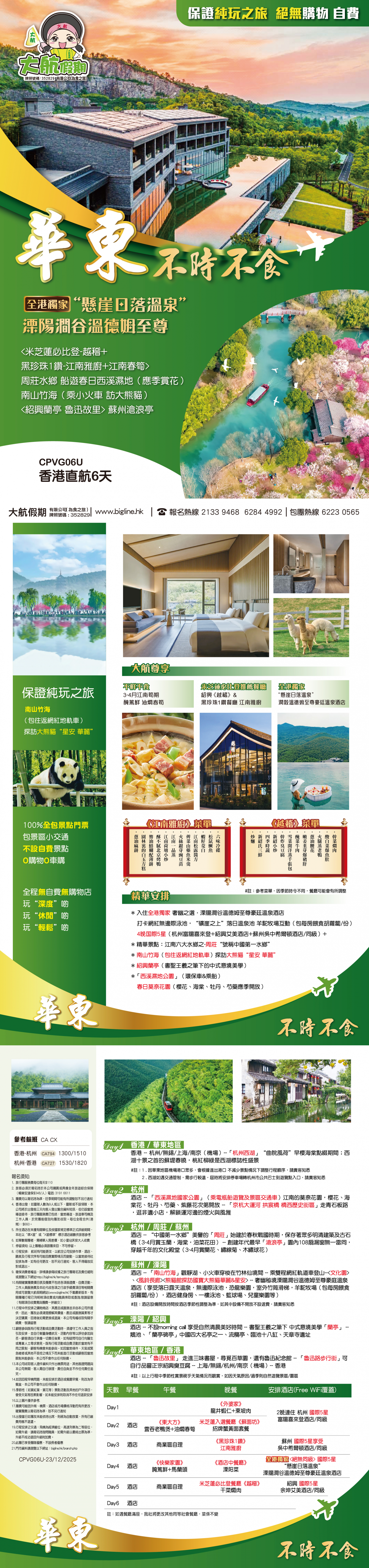 1 . 因華東地區機場港口眾多,會根據進出港口 不減少景點情況下調整行程順序,請貴客知悉