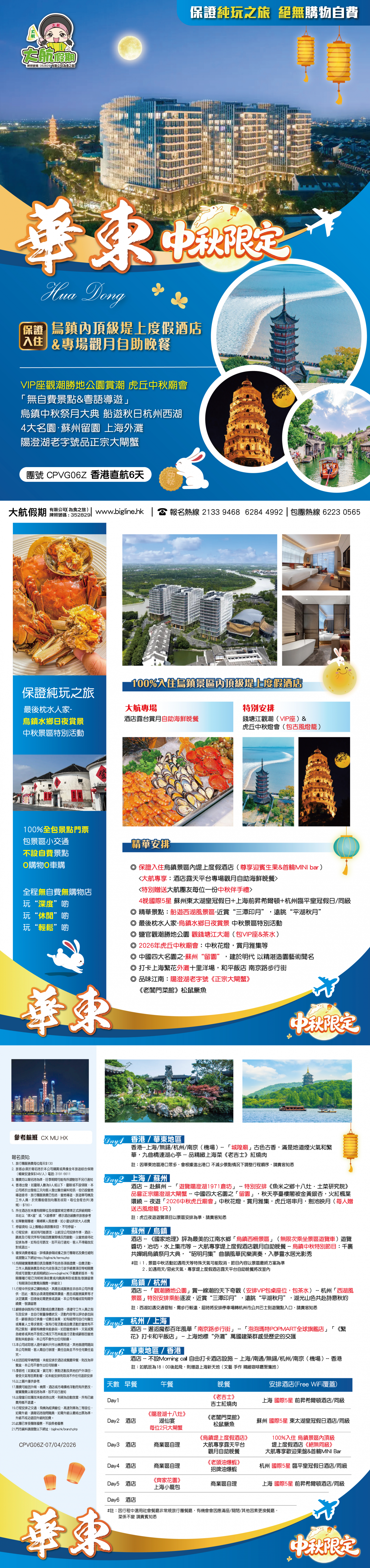 註:因華東地區港口眾多,會根據進出港口 不減少景點情況下調整行程順序,請貴客知悉