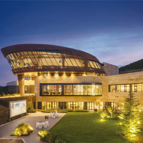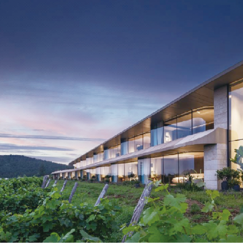 .酒店 -- 「丁洛特酒莊」桶邊取酒、亞洲最大酒窖、DIY灌裝白蘭地 、參觀葡萄園區 -- 「蓬萊閣」中國四大名樓之一 八仙雕塑  --  獨家入住逃牛嶺酒莊(酒莊參觀、圍爐煮酒) -- 品味米芝蓮2星餐廳喜粵8號蓬萊店 -- 酒莊內卡拉OK歡唱3小時(每團含2打啤酒+花生等小吃)
