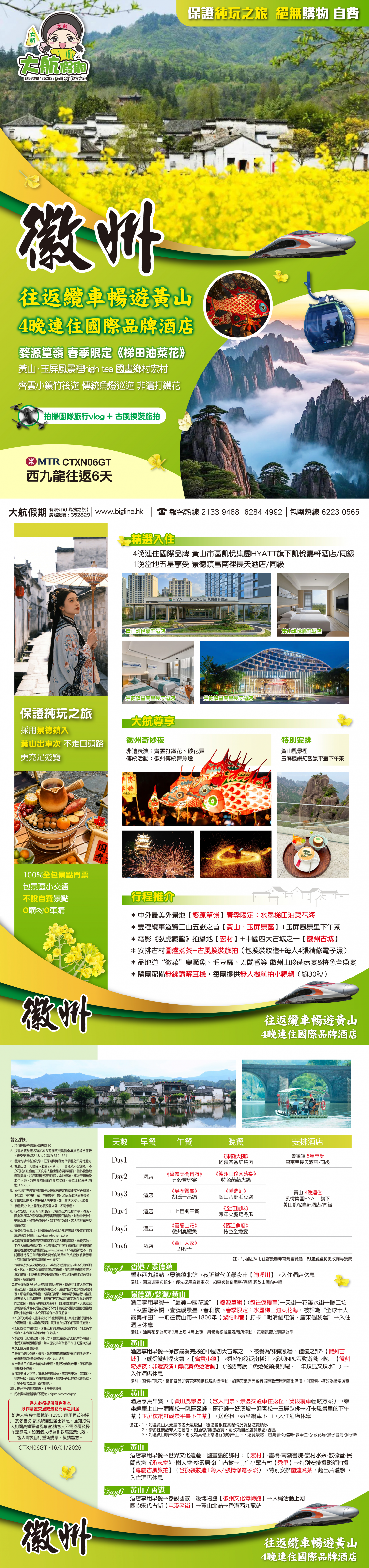 備註:1、如遇黃山人流量或者天氣原因,導遊會根據實際情況調整遊覽順序
