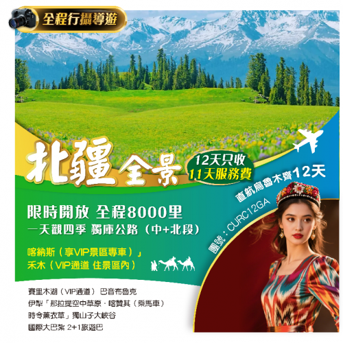 #註:因當地部分景點限制(如喀納斯湖、羅布人村寨、那拉提、巴音布魯克等等)持外籍護照、非中國籍回鄉證旅客有不同政策變化,有機會拒絕入場,未能入場退回門票,自行在景區外等候區等待匯合,以實際當時當地政策為準,請貴客知悉