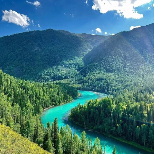 .酒店--(#約4.5小時車程)5A級,譽為神的花園「喀納斯景區」(包VIP環保車)--遊覽臥龍灣(因河中沙洲酷似一條巨龍橫臥水中而得名)、月亮灣(河灣形狀如彎月而得名)、神仙灣(湖水在陽光照射下呈現出五彩斑斕的顏色)--喀納斯湖(核心景點,湖光山色美不勝收)--賈登峪入住
