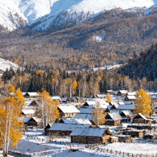 .酒店--(#約3.5-4小時車程)攝影師的天堂「禾木村(VIP通道旅遊巴直接進入)」遊禾木橋、白樺林、群山環抱,禾木河蜿蜒流過,豐茂的草場上散落著馬、牛和羊,構成一幅美麗的自然畫卷。安排「圖瓦人家訪」探訪百年茶館,品圖瓦人小吃優酪乳、奶酒、奶茶等