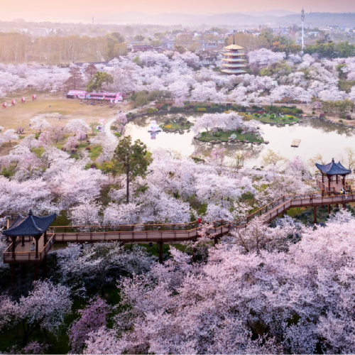 .酒店--(乘車約40分鐘)東湖櫻園(賞櫻花海、拍攝春日勝景)--(乘車約30分鐘)黃鶴樓(包電瓶車,登樓