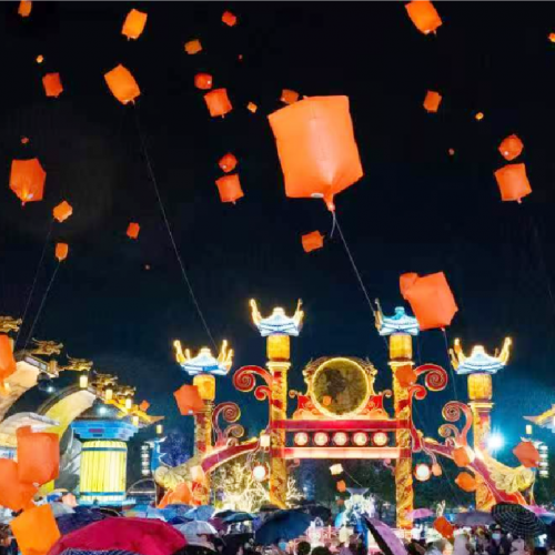 1.5小時)木蘭花鄉(漫步花海秘境、觀非遺打鐵花)--放孔明燈--(乘車約1.5小時)返回酒店