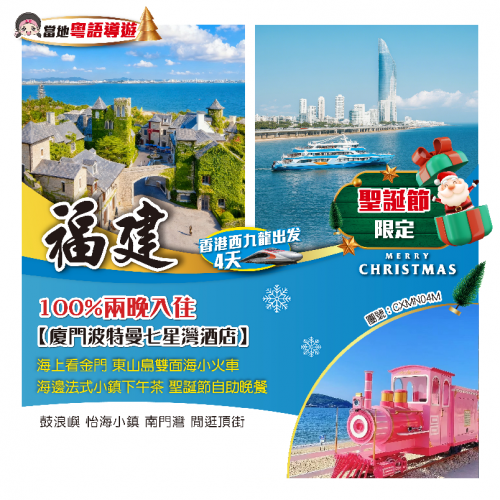 <12.25西九龍直達潮汕聖誕專列>重本安排『非遺潮韻聖誕夜』賞「潮汕英歌舞、打鐵花、舞火龍」潮州古城 夜遊汕頭小公園 特別安排南澳島航拍 連住兩晚2024年8月全新裝修<汕頭花園賓館>純玩3天