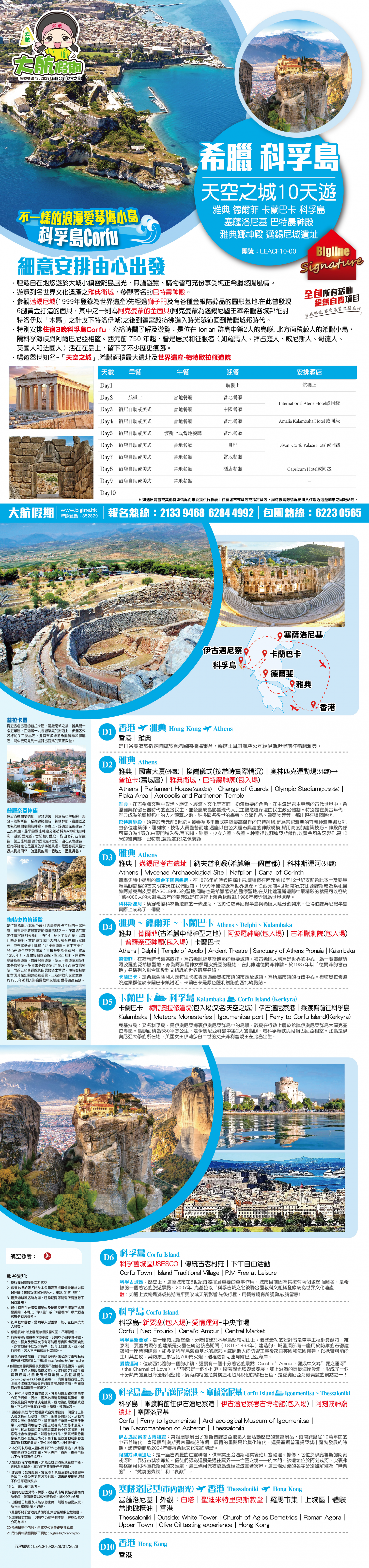 卡蘭巴卡|梅特奥拉修道院(包入埸;又名:天空之城) 伊古邁尼察港|乘渡輪前往科孚島