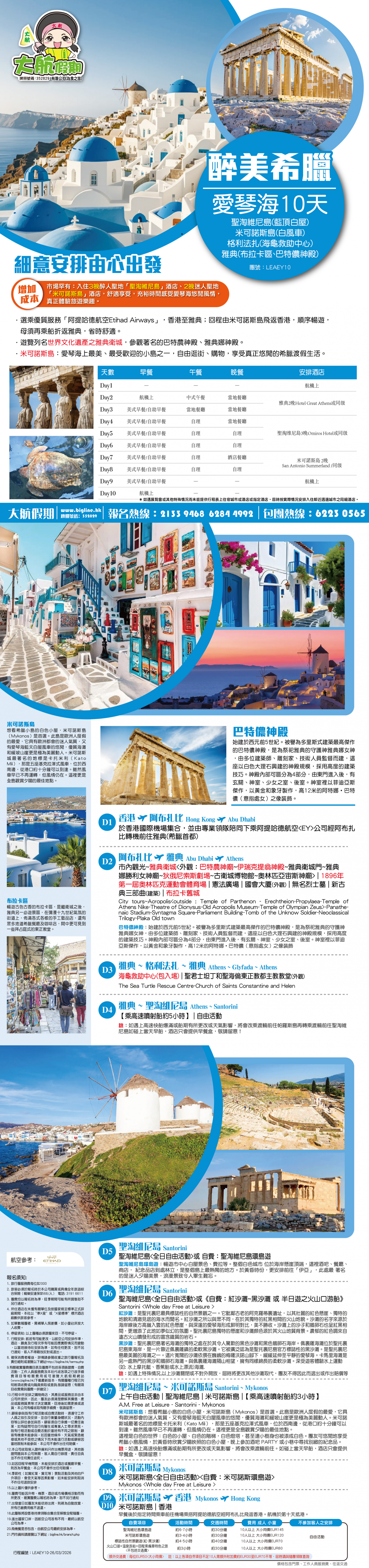 *團員繳付退票費後 (如適用): 1) 已繳款項可保留半年; 或 2) 選擇轉團後, 餘款則保留半年; 或 3) 可繳付『迫不得已理由』之手續費後, 取回已付餘款。 *個別機票+酒店套票產品如因『迫不得已理由』取消外遊行程, 處理旅客退款時亦按以上訂列收取每位退票費及手續費, 並以行程表 (套票單張) 所列為準。 責任細則: 1. 本公司保留合併團隊出發的權利。 2. 行程書或單張內所列費用根據當時機票價格及國際貨幣兌換率而訂立。外幣浮動等情況之下, 本公司保留在出發前調整各項費用的權利及徵收額外費用。 3. 所有列出的交通服務資料只供參考, 如有更改概不負責, 一切須以出票時為準。 4. 除本公司直接提供之服務外, 本公司及其職員或附屬公司或與本公司有經營關係之公司代理人身份在香港或外地安排其他獨立機構所提供之交通工具 (如飛機、輪船、火車、或遊覽巴士等) 、住宿、膳食或娛樂觀光項目等 (“委託機構”), 團員如遇交通延誤、行李遺失、意外傷亡或財物損失等, 該依照當地法律向擁有、管理或操作之委託機構直接交涉或追討賠償, 通常該等機構均各訂位不同條例, 以對客人負責。在此情況下, 本公司概不對該等損失或傷亡負責。 5. 除因由本公司之員工或其他直接管理或操作之機構之疏忽而引致團員之個人傷亡外, 本公司對團員在任何意外中之個人傷亡、經濟、娛樂或精神損失概不負責。 6. 除經本公司同意及安排, 如團員自行更改由其他人士代為參團, 本公司或其委託機構之職員有權取消其隨團之資格, 而無須發還任何團費, 而該人士在隨團期間之保險、責任賠償、行為後果等均由該人仕自行承擔。 7. 如因天氣、罷工、戰爭、怠工或安全情況影響而引致有關交通工具暫停服務, 停航或其他事故, 而必須將行程更改或取消部份行程, 本公司則將團員所繳交之費用扣除因以上事故而引致之損失後, 退回差額給團員。 8. 有關住宿、膳食、遊覽節目等問題, 均依據行程表安排, 行程先後次序有可能需要更改, 一切以當地安排為準。若遇特殊情況, 如簽證受阻, 當地酒店突告客滿或航機改變飛行時間或地點, 以及非本公司或其委託機構所能控制之因素, 令旅行團節目有增減, 或臨時更改交通工具、班機時間、機種及更換酒店等等, 本公司或其委託機構得依當時情況全權盡力處理, 團員不得藉故反對或退出, 因故取消之節目, 將不獲退還款項, 任何因延期而引致之額外支出, 本公司或其委託機構概不負責。 9. 所有酒店及住宿根據行程安排, 本公司視乎當時情形作出更改, 但不限於遇展覽會或特殊情況下, 將住宿鄰近城市之同等級酒店及住宿代替。本公司如因『迫不得已理由(外遊)』(即指戰爭、政治動盪、恐怖襲擊、天災、疫症、惡劣天氣、交通工具發生技術問題、載運機構臨時更改班次或取消服務、罷工、工業行動、旅遊目的地政府或世界衛生組織發出旅遊警示(警告)、香港特別行政區政府發出紅色或黑色外遊警示、不可抗力事件,以及業界不能控制的其他不利離開香港或在香港境外旅遊的情況)於外遊旅行團出發後更改任何項目而引致成本增加,可向顧客徵收額外費用。 10. 【已成團】代表該團號之指定出發日期預訂機位或已有足夠人數報名參加。但出發與否還受其他因素影響, 本公司保留最終決定權。 11. 任何團員在參與各項活動時, 如經常不遵守服飾人員之指引或安排, 在行動或言語上侮辱或滋擾其他團員或工作人員, 本公司或其委託機構職員有權視具體情況而取消其隨團資格而母須發任何團費, 而受該旅客監護之18歲以下同行團員亦須一併離開, 有關旅客離團後一切活動, 概與本公司或其委託機構無關。 12. 團員如欲於旅程完畢後延期返港, 須於出發前十四天提出, 以便本公司代為預定返港機位, 延期返港之機位, 未能即時作實, 團員不得藉此理由要求退出, 旅程完畢後延期逗留之費用, 概由團員自負。 13. 延期返港之團友, 必須在離境前七十二小時向航空公司確實回程機位, 任何機位如有變更, 概與本公司無關。 14. 團員如在旅途中自行離團或放棄行程, 離團後之責任自負, 一切後果與本公司或其委託機構無關。 15. 參團者須切實遵守各國及各地法例, 包括但不限於防疫防控條例, 並嚴禁攜帶違例物品出入境, 並照實申報攜帶之物品及現金。 16. 任何種類的簽證審批權及出入境批准權一律由該國或地區之領事館及/或出入境部門全權決定, 出入境如有問題, 責任旅客自負, 本公司或其委託機構母須負任何責任。如簽證已代辦, 簽證費恕不退還。 17. 即使團員持有效之入境簽證及旅遊證件, 而於入境時被當值之移民局海關人員拒絕入境, 本公司或其委託機構亦無須負任何責任。所需額外安排之食宿、交通費用、全部由其本人負責, 其餘下的行程亦將不會獲得任何補償, 亦不得要求退款或改團。 18. 中國內地相關法規規定, 即日起旅客入住中國內地境內酒店時, 公安機關會透過酒店前台向旅客一併採集人像信息資訊。 19. 如出現一些非本公司能力範圍可控制之問題 (如花卉、紅葉提早凋謝或景觀、自然現象、景點活動或戶外項目) 會受天氣等因素影響, 如未能安排則取消不作任何退款安排。 20. 旅客如在旅程中確診 COVID-19或其他傳染病,無論受到當地政府隔離或其他檢疫要求影響與否,為確保其他旅客之安全,確診旅