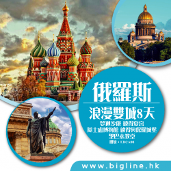 夢迴沙俄浪漫雙城 - 俄羅斯 8天 / 克里姆林宮, 馬戲團表演 , 乘坐俄羅斯高鐵往返莫斯科/聖彼得堡, 隱士盧博物館 , 彼得夏宮