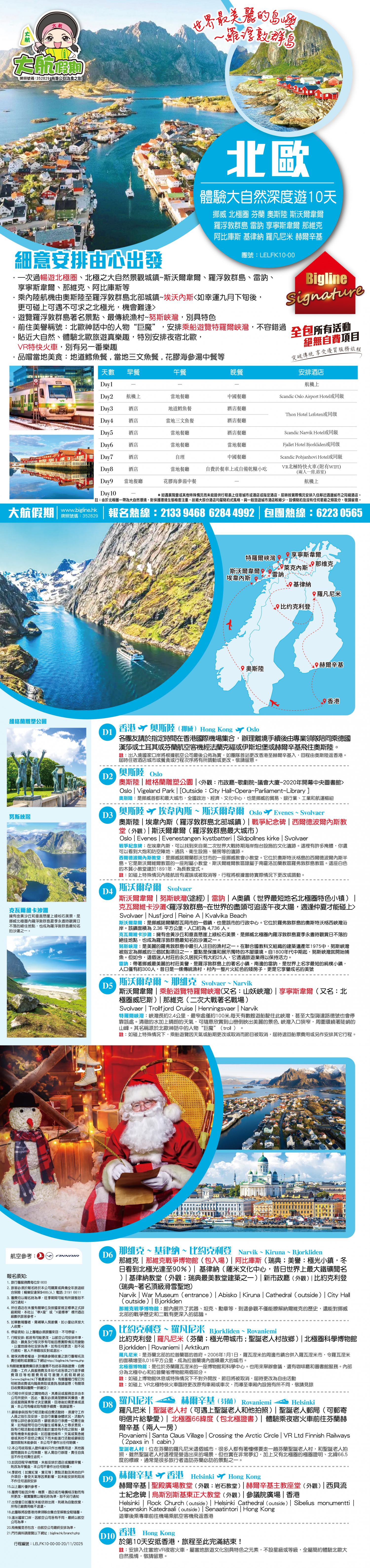 各團友請於指定時間在香港國際機場集合·理離境手續後由專業領隊陪同乘搭土耳其或芬蘭航空客機經伊斯坦堡或赫爾辛基飛往奥斯陸·