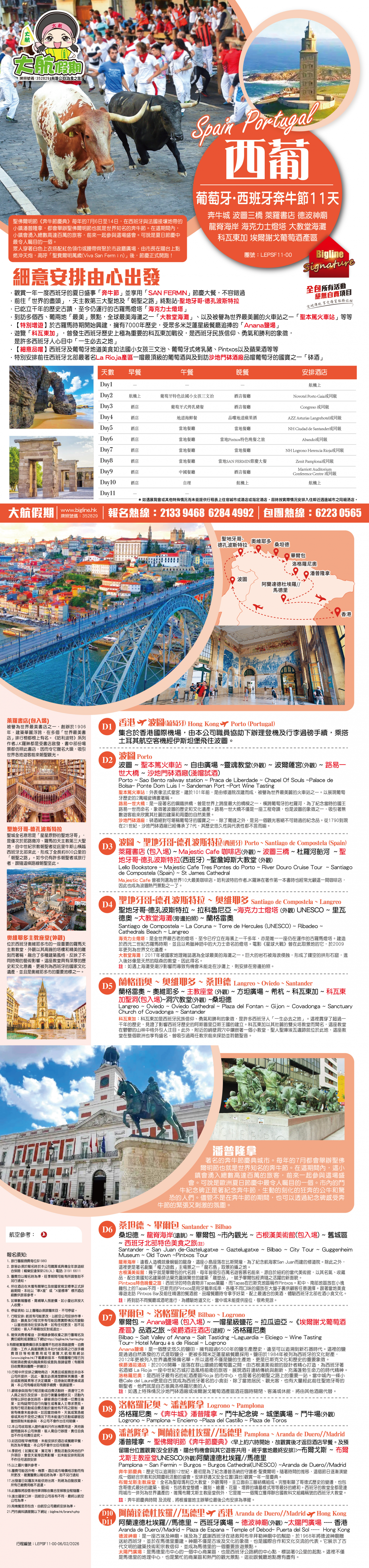 *團員繳付退票費後 (如適用): 1) 已繳款項可保留半年; 或 2) 選擇轉團後, 餘款則保留半年; 或 3) 可繳付『迫不得已理由』之手續費後, 取回已付餘款。 *個別機票+酒店套票產品如因『迫不得已理由』取消外遊行程, 處理旅客退款時亦按以上訂列收取每位退票費及手續費, 並以行程表 (套票單張) 所列為準。 責任細則: 1. 本公司保留合併團隊出發的權利。 2. 行程書或單張內所列費用根據當時機票價格及國際貨幣兌換率而訂立。外幣浮動等情況之下, 本公司保留在出發前調整各項費用的權利及徵收額外費用。 3. 所有列出的交通服務資料只供參考, 如有更改概不負責, 一切須以出票時為準。 4. 除本公司直接提供之服務外, 本公司及其職員或附屬公司或與本公司有經營關係之公司代理人身份在香港或外地安排其他獨立機構所提供之交通工具 (如飛機、輪船、火車、或遊覽巴士等) 、住宿、膳食或娛樂觀光項目等 (“委託機構”), 團員如遇交通延誤、行李遺失、意外傷亡或財物損失等, 該依照當地法律向擁有、管理或操作之委託機構直接交涉或追討賠償, 通常該等機構均各訂位不同條例, 以對客人負責。在此情況下, 本公司概不對該等損失或傷亡負責。 5. 除因由本公司之員工或其他直接管理或操作之機構之疏忽而引致團員之個人傷亡外, 本公司對團員在任何意外中之個人傷亡、經濟、娛樂或精神損失概不負責。 6. 除經本公司同意及安排, 如團員自行更改由其他人士代為參團, 本公司或其委託機構之職員有權取消其隨團之資格, 而無須發還任何團費, 而該人士在隨團期間之保險、責任賠償、行為後果等均由該人仕自行承擔。 7. 如因天氣、罷工、戰爭、怠工或安全情況影響而引致有關交通工具暫停服務, 停航或其他事故, 而必須將行程更改或取消部份行程, 本公司則將團員所繳交之費用扣除因以上事故而引致之損失後, 退回差額給團員。 8. 有關住宿、膳食、遊覽節目等問題, 均依據行程表安排, 行程先後次序有可能需要更改, 一切以當地安排為準。若遇特殊情況, 如簽證受阻, 當地酒店突告客滿或航機改變飛行時間或地點, 以及非本公司或其委託機構所能控制之因素, 令旅行團節目有增減, 或臨時更改交通工具、班機時間、機種及更換酒店等等, 本公司或其委託機構得依當時情況全權盡力處理, 團員不得藉故反對或退出, 因故取消之節目, 將不獲退還款項, 任何因延期而引致之額外支出, 本公司或其委託機構概不負責。 9. 所有酒店及住宿根據行程安排, 本公司視乎當時情形作出更改, 但不限於遇展覽會或特殊情況下, 將住宿鄰近城市之同等級酒店及住宿代替。本公司如因『迫不得已理由(外遊)』(即指戰爭、政治動盪、恐怖襲擊、天災、疫症、惡劣天氣、交通工具發生技術問題、載運機構臨時更改班次或取消服務、罷工、工業行動、旅遊目的地政府或世界衛生組織發出旅遊警示(警告)、香港特別行政區政府發出紅色或黑色外遊警示、不可抗力事件,以及業界不能控制的其他不利離開香港或在香港境外旅遊的情況)於外遊旅行團出發後更改任何項目而引致成本增加,可向顧客徵收額外費用。 10. 【已成團】代表該團號之指定出發日期預訂機位或已有足夠人數報名參加。但出發與否還受其他因素影響, 本公司保留最終決定權。 11. 任何團員在參與各項活動時, 如經常不遵守服飾人員之指引或安排, 在行動或言語上侮辱或滋擾其他團員或工作人員, 本公司或其委託機構職員有權視具體情況而取消其隨團資格而母須發任何團費, 而受該旅客監護之18歲以下同行團員亦須一併離開, 有關旅客離團後一切活動, 概與本公司或其委託機構無關。 12. 團員如欲於旅程完畢後延期返港, 須於出發前十四天提出, 以便本公司代為預定返港機位, 延期返港之機位, 未能即時作實, 團員不得藉此理由要求退出, 旅程完畢後延期逗留之費用, 概由團員自負。 13. 延期返港之團友, 必須在離境前七十二小時向航空公司確實回程機位, 任何機位如有變更, 概與本公司無關。 14. 團員如在旅途中自行離團或放棄行程, 離團後之責任自負, 一切後果與本公司或其委託機構無關。 15. 參團者須切實遵守各國及各地法例, 包括但不限於防疫防控條例, 並嚴禁攜帶違例物品出入境, 並照實申報攜帶之物品及現金。 16. 任何種類的簽證審批權及出入境批准權一律由該國或地區之領事館及/或出入境部門全權決定, 出入境如有問題, 責任旅客自負, 本公司或其委託機構母須負任何責任。如簽證已代辦, 簽證費恕不退還。 17. 即使團員持有效之入境簽證及旅遊證件, 而於入境時被當值之移民局海關人員拒絕入境, 本公司或其委託機構亦無須負任何責任。所需額外安排之食宿、交通費用、全部由其本人負責, 其餘下的行程亦將不會獲得任何補償, 亦不得要求退款或改團。 18. 中國內地相關法規規定, 即日起旅客入住中國內地境內酒店時, 公安機關會透過酒店前台向旅客一併採集人像信息資訊。 19. 如出現一些非本公司能力範圍可控制之問題 (如花卉、紅葉提早凋謝或景觀、自然現象、景點活動或戶外項目) 會受天氣等因素影響, 如未能安排則取消不作任何退款安排。 20. 旅客如在旅程中確診 COVID-19或其他傳染病,無論受到當地政府隔離或其他檢疫要求影響與否,為確保其他旅客之安全,確診旅