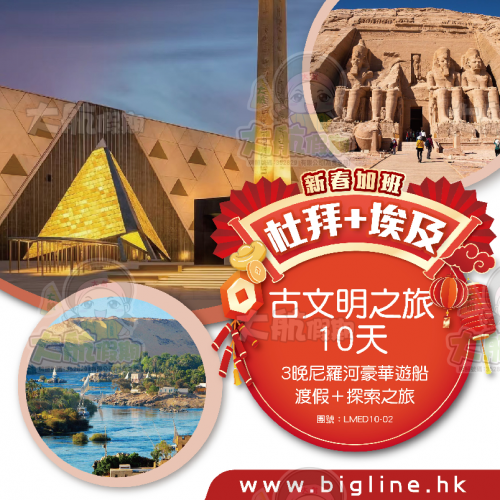 古埃及法老之城-樂蜀~萬儂神殿~帝王谷(包門票進入法老王陵)~女王神殿 (哈姬蘇女王神殿 ,古埃及權清一時的女法老所建造,三層巨大的露台,巧妙的將神殿與大自然山壁結合為一體,樂蜀最為神聖的建築) 卡納克神殿(世界上最大之一的露天史前古蹟,神殿規模之大無所可及,神殿門前列著一排獅身羊面像,入門後還有一排,緊接著的則是十根高約二十一公尺的石柱,於此還可見到的二座方尖碑,高約二十九米,是埃及現今最高的方尖碑,緬懷埃及古帝國榮耀,令人不勝低迴)~樂蜀神廟~(這是新王朝時期拉美西斯二世所建 ,為了對底比斯的守護神表示尊敬,也為了一年一度舉行的迎神慶典因而建成) ~樂蜀市集~洪加達