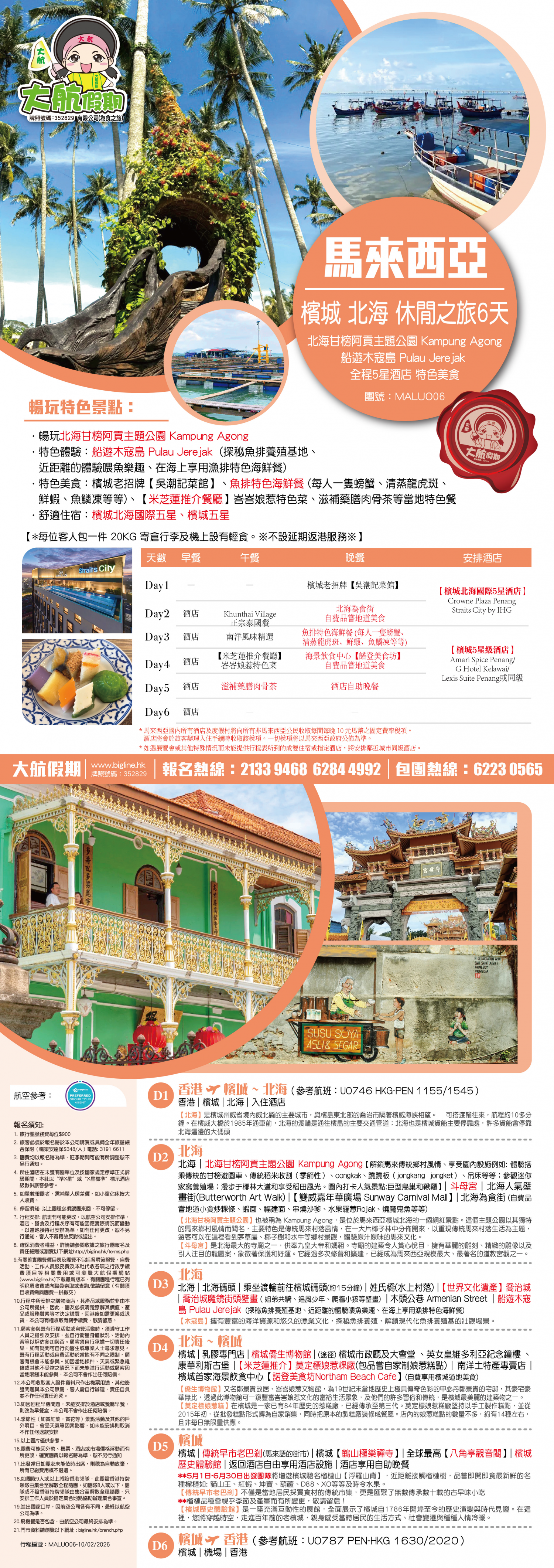 Day 6 : 檳城-香港(參考航班:UO787 PEN-HKG 1630/2020)