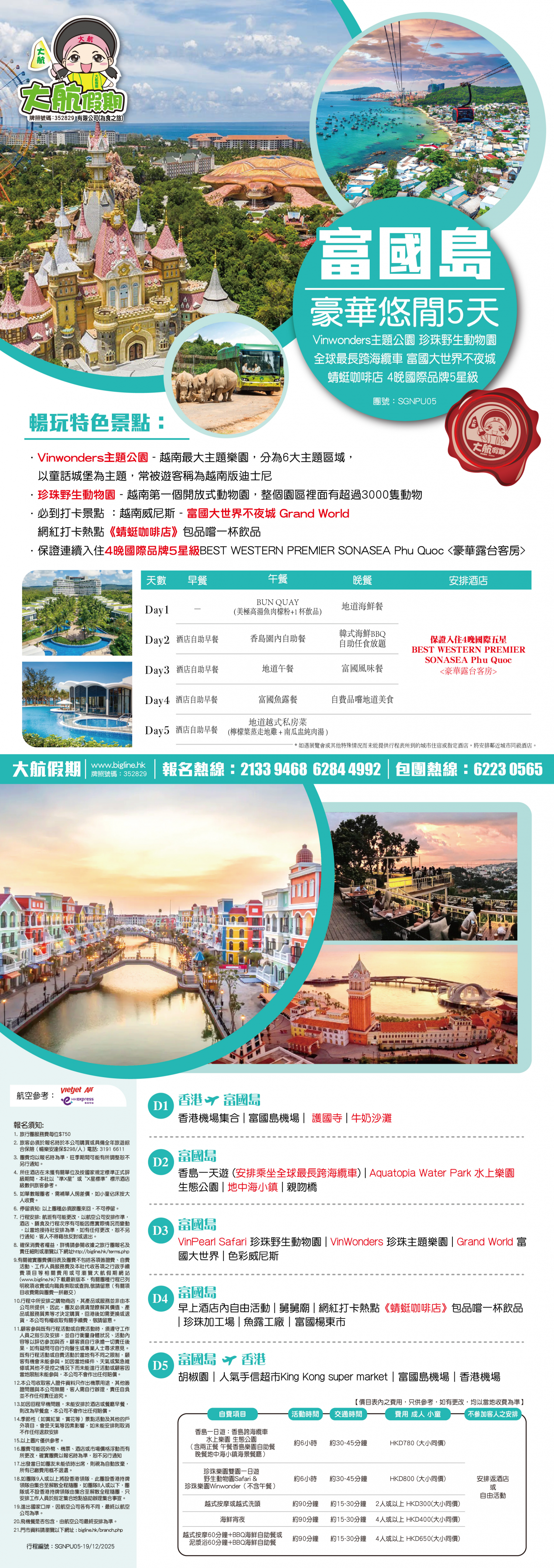 香港機場集合 | 富國島機場 | 護國寺 | 牛奶沙灘 | 老虎籠監獄