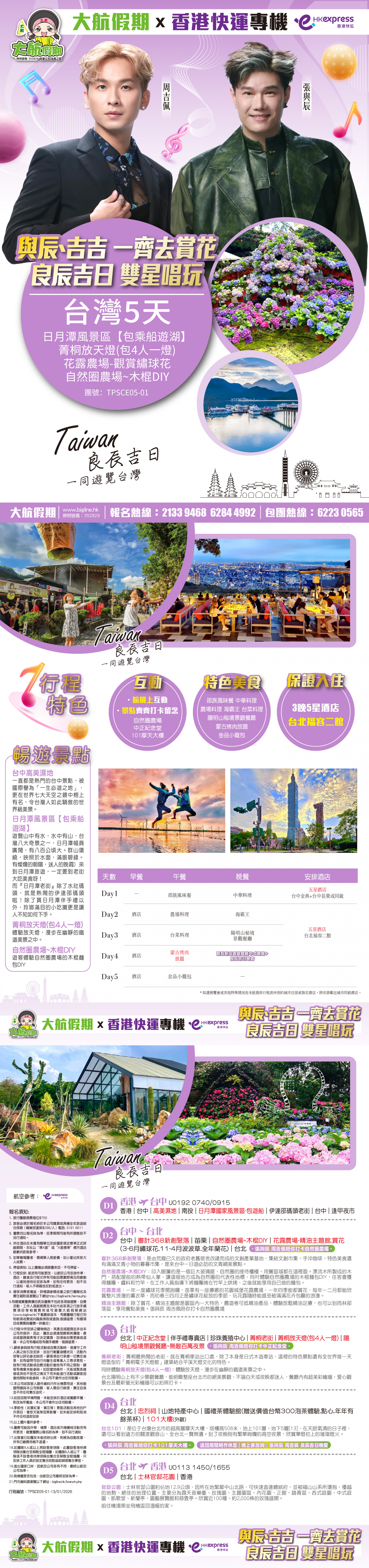 *團員繳付退票費後 (如適用): 1) 已繳款項可保留半年; 或 2) 選擇轉團後, 餘款則保留半年; 或 3) 可繳付『迫不得已理由』之手續費後, 取回已付餘款。 *個別機票+酒店套票產品如因『迫不得已理由』取消外遊行程, 處理旅客退款時亦按以上訂列收取每位退票費及手續費, 並以行程表 (套票單張) 所列為準。 責任細則: 1. 本公司保留合併團隊出發的權利。 2. 行程書或單張內所列費用根據當時機票價格及國際貨幣兌換率而訂立。外幣浮動等情況之下, 本公司保留在出發前調整各項費用的權利及徵收額外費用。 3. 所有列出的交通服務資料只供參考, 如有更改概不負責, 一切須以出票時為準。 4. 除本公司直接提供之服務外, 本公司及其職員或附屬公司或與本公司有經營關係之公司代理人身份在香港或外地安排其他獨立機構所提供之交通工具 (如飛機、輪船、火車、或遊覽巴士等) 、住宿、膳食或娛樂觀光項目等 (“委託機構”), 團員如遇交通延誤、行李遺失、意外傷亡或財物損失等, 該依照當地法律向擁有、管理或操作之委託機構直接交涉或追討賠償, 通常該等機構均各訂位不同條例, 以對客人負責。在此情況下, 本公司概不對該等損失或傷亡負責。 5. 除因由本公司之員工或其他直接管理或操作之機構之疏忽而引致團員之個人傷亡外, 本公司對團員在任何意外中之個人傷亡、經濟、娛樂或精神損失概不負責。 6. 除經本公司同意及安排, 如團員自行更改由其他人士代為參團, 本公司或其委託機構之職員有權取消其隨團之資格, 而無須發還任何團費, 而該人士在隨團期間之保險、責任賠償、行為後果等均由該人仕自行承擔。 7. 如因天氣、罷工、戰爭、怠工或安全情況影響而引致有關交通工具暫停服務, 停航或其他事故, 而必須將行程更改或取消部份行程, 本公司則將團員所繳交之費用扣除因以上事故而引致之損失後, 退回差額給團員。 8. 有關住宿、膳食、遊覽節目等問題, 均依據行程表安排, 行程先後次序有可能需要更改, 一切以當地安排為準。若遇特殊情況, 如簽證受阻, 當地酒店突告客滿或航機改變飛行時間或地點, 以及非本公司或其委託機構所能控制之因素, 令旅行團節目有增減, 或臨時更改交通工具、班機時間、機種及更換酒店等等, 本公司或其委託機構得依當時情況全權盡力處理, 團員不得藉故反對或退出, 因故取消之節目, 將不獲退還款項, 任何因延期而引致之額外支出, 本公司或其委託機構概不負責。 9. 所有酒店及住宿根據行程安排, 本公司視乎當時情形作出更改, 但不限於遇展覽會或特殊情況下, 將住宿鄰近城市之同等級酒店及住宿代替。本公司如因『迫不得已理由(外遊)』(即指戰爭、政治動盪、恐怖襲擊、天災、疫症、惡劣天氣、交通工具發生技術問題、載運機構臨時更改班次或取消服務、罷工、工業行動、旅遊目的地政府或世界衛生組織發出旅遊警示(警告)、香港特別行政區政府發出紅色或黑色外遊警示、不可抗力事件,以及業界不能控制的其他不利離開香港或在香港境外旅遊的情況)於外遊旅行團出發後更改任何項目而引致成本增加,可向顧客徵收額外費用。 10. 【已成團】代表該團號之指定出發日期預訂機位或已有足夠人數報名參加。但出發與否還受其他因素影響, 本公司保留最終決定權。 11. 任何團員在參與各項活動時, 如經常不遵守服飾人員之指引或安排, 在行動或言語上侮辱或滋擾其他團員或工作人員, 本公司或其委託機構職員有權視具體情況而取消其隨團資格而母須發任何團費, 而受該旅客監護之18歲以下同行團員亦須一併離開, 有關旅客離團後一切活動, 概與本公司或其委託機構無關。 12. 團員如欲於旅程完畢後延期返港, 須於出發前十四天提出, 以便本公司代為預定返港機位, 延期返港之機位, 未能即時作實, 團員不得藉此理由要求退出, 旅程完畢後延期逗留之費用, 概由團員自負。 13. 延期返港之團友, 必須在離境前七十二小時向航空公司確實回程機位, 任何機位如有變更, 概與本公司無關。 14. 團員如在旅途中自行離團或放棄行程, 離團後之責任自負, 一切後果與本公司或其委託機構無關。 15. 參團者須切實遵守各國及各地法例, 包括但不限於防疫防控條例, 並嚴禁攜帶違例物品出入境, 並照實申報攜帶之物品及現金。 16. 任何種類的簽證審批權及出入境批准權一律由該國或地區之領事館及/或出入境部門全權決定, 出入境如有問題, 責任旅客自負, 本公司或其委託機構母須負任何責任。如簽證已代辦, 簽證費恕不退還。 17. 即使團員持有效之入境簽證及旅遊證件, 而於入境時被當值之移民局海關人員拒絕入境, 本公司或其委託機構亦無須負任何責任。所需額外安排之食宿、交通費用、全部由其本人負責, 其餘下的行程亦將不會獲得任何補償, 亦不得要求退款或改團。 18. 中國內地相關法規規定, 即日起旅客入住中國內地境內酒店時, 公安機關會透過酒店前台向旅客一併採集人像信息資訊。 19. 如出現一些非本公司能力範圍可控制之問題 (如花卉、紅葉提早凋謝或景觀、自然現象、景點活動或戶外項目) 會受天氣等因素影響, 如未能安排則取消不作任何退款安排。 20. 旅客如在旅程中確診 COVID-19或其他傳染病,無論受到當地政府隔離或其他檢疫要求影響與否,為確保其他旅客之安全,確診旅
