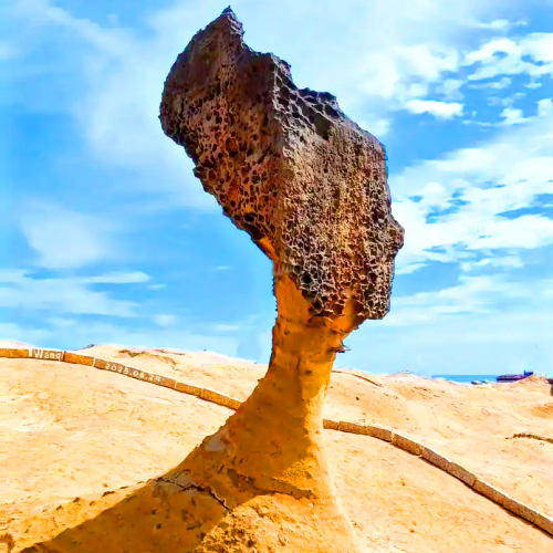 女王頭是野柳地質公園的地標,或稱女王石,女王頭是野柳地質公園的地標,本身為蕈狀巖,間因頂部結核上的節理斷裂,讓巖石形狀改變,遠觀時外形雍容大方,頸部修長、臉部線條幽美,貌似英國伊莉莎白女王頭像,因而得名。經過數十多年自然風化影響,女王頭脖子越來越細,目前已委託學術研究單位進行補強計畫,以確保女王頭地標長久存在。